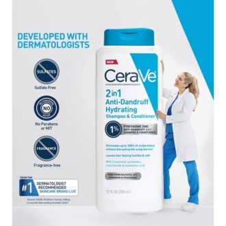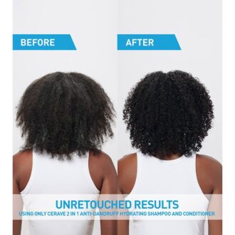 شامپو و نرمکننده ضدشوره مرطوبکننده CeraVe ۲ در ۱ تا ۱۰۰٪ از شورههای قابل مشاهده را از بین میبرد و همچنین خارش و التهاب را کاهش میدهد.
